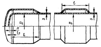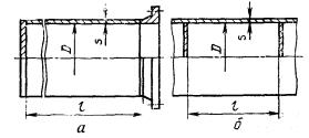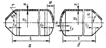 а — обечайка с отбортованными днищами, б — обечайка с неотбортованными днищами