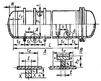 2.3.1.3. При изготовлении обечайки из листов разной толщины, соединенных продольными швами, расчет толщины обечайки проводят для каждого листа с учетом имеющихся в них ослаблений.